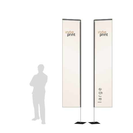 Die Beachflag Rechteck Large von indieprint in Deutschland bietet genügend Platz für Aufdrucke, welche dank der Rechteck-Form besonders gut zur Geltung kommen. Damit sichert die Fahne sich die Aufmerksamkeit der Passanten und ist so ideal als Wegweiser oder zur Kommunikation von Botschaften geeignet, beispielsweise auf Messen oder Events, vor Autowerkstätten, an Ständen in der Fußgängerzone oder als Außenwerbung vor dem Einzelhandel. Die Fahne ist vielseitig einsetzbar und sowohl für einmalige Verwendungen wie Geschäftseröffnungen oder Produktvorstellungen als auch als dauerhafter Werbeträger geeignet.