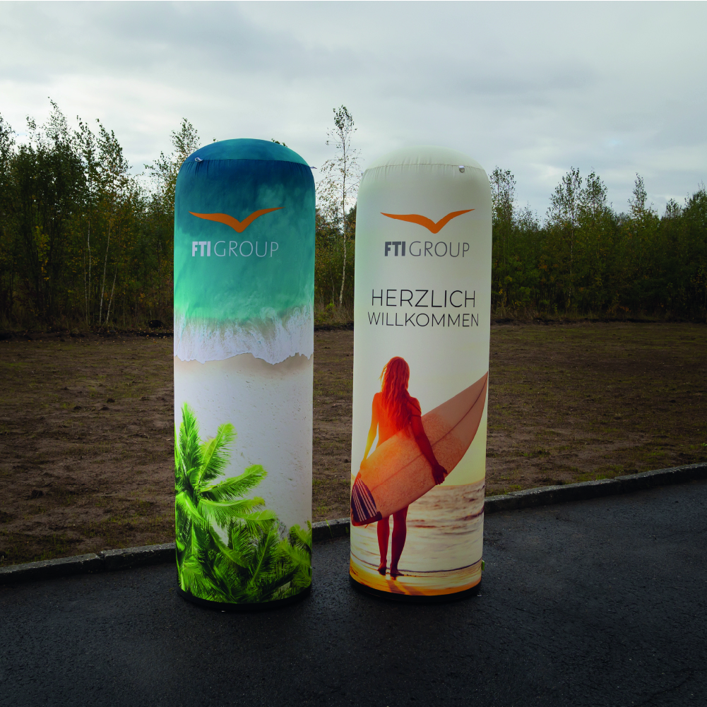 Aufblasbare Werbesäule pneumatisch (D 67 cm x H 200 cm) bedruckt in Deutschland bei indieprint