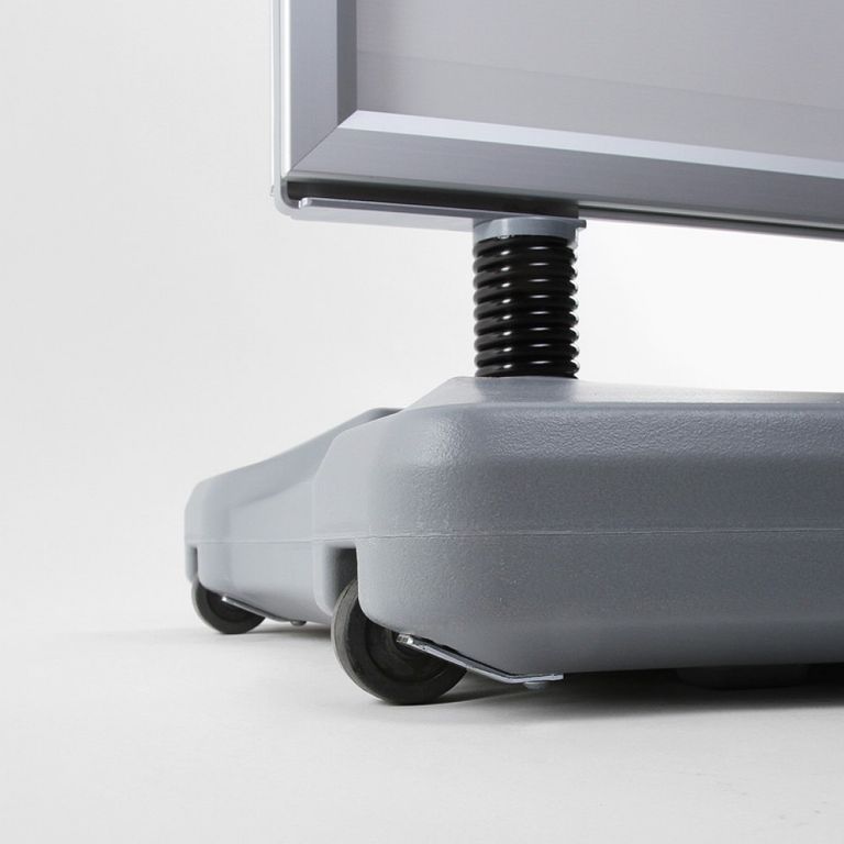 Speziell für Ihre Werbung in windigen Bereichen ist der Kundenstopper WINDTALKER® von indieprint in Deutschland die optimale Lösung. Sein mit Wasser oder Sand befüllbarer Standfuß bietet in Verbindung mit den Spezialfedern aus Stahl eine hohe Standfestigkeit. Für den einfachen Transport sind im Standfuß Rollen integriert. So können Sie den Kundenstopper trotz des Standgewichtes einfach bewegen. Der Aluminium-Schnellwechselrahmen kann doppelseitig mit Plakaten bestückt werden und garantiert Ihnen auch bei hohen Windstärken eine auffällige Werbemöglichkeit.