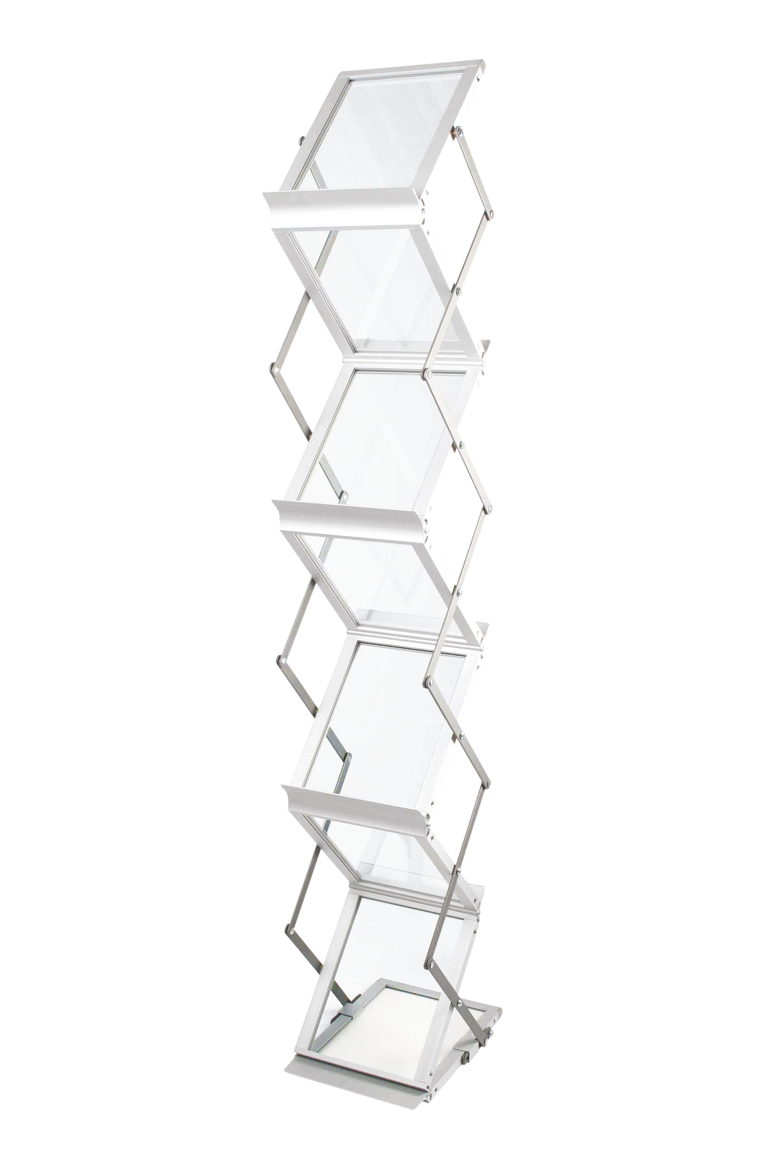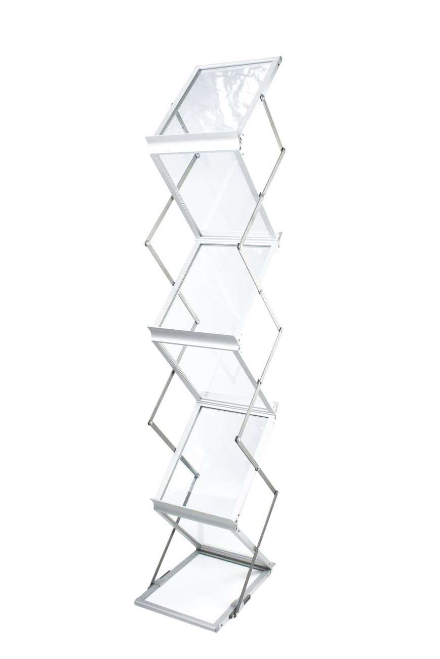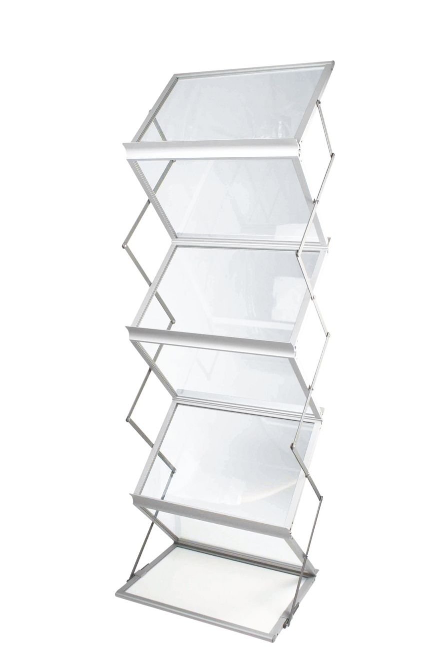 Mit dem Zed-Up Lite Prospektständer von indieprint in Deutschland erhalten Sie einen populären Aluminium-Ständer mit insgesamt sechs doppelseitigen Acrylablagen. Der Ständer lässt sich platzsparend zusammenklappen und verfügt außerdem über ein sehr leichtes Gewicht. Zudem ist ein stabiler Koffer inklusive, sodass der Transport besonders einfach und bequem möglich ist. Das macht den Zed-Up Lite ideal, um zu Messen, Events, Präsentationen und sonstigen Veranstaltungen mitgenommen zu werden.