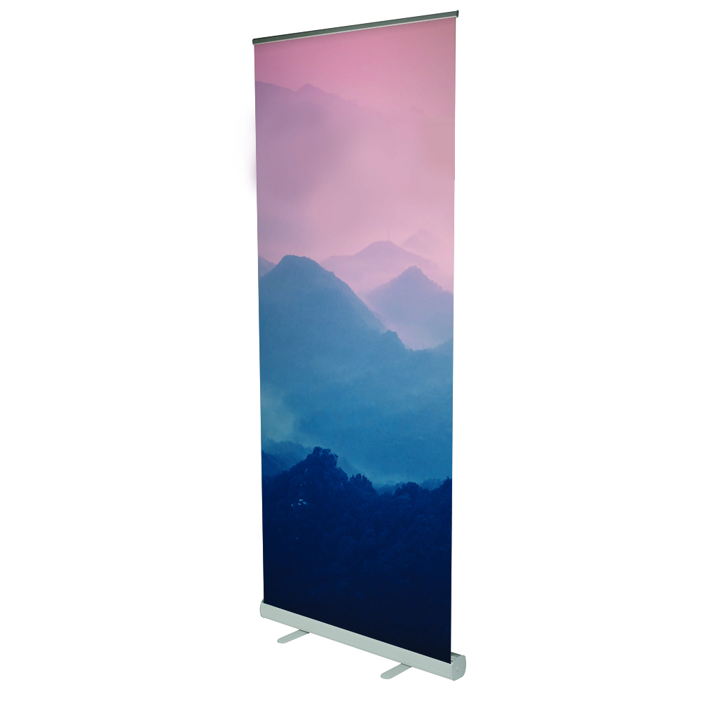 Mit dem Roll-Up Banner Budget von indieprint in Deutschland erhalten Sie ein Banner aus der Basic-Reihe. Dieser ist Silber eloxiert und kommt mit zwei ausklappbaren Füßen sowie einer Klemmschiene daher. Auch für Messen, Events, Ausstellungen, Werbeaktionen und Ähnliches eignet der Roll-Up Banner sich ideal, denn er kann einfach und bequem in der mitgelieferten Transporttasche transportiert werden.
